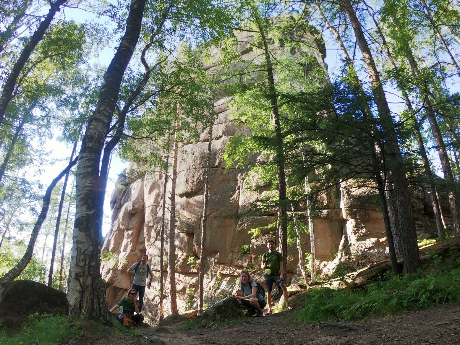 Po navodilih smo se odpeljali še 2 postaji dalje in se po lepo označeni, široki poti podali na 1.5 urni pohod do skal. Pot je bila zelo lepa in precej obljudena. Skale bile so veličastne in zgledalo je, kot da se zelo lahko pride na njihov vrh. Sledilo je nekaj žal neuspelih poskusov, da bi osvojili katerega izmed njih. Kmalu smo obupali nad to idejo in se raje sprehodili okoli. Da bi si prikrajšali malo časa, smo se po manj obljudeni poti podali nazaj v dolino in vsa opozorila o medvedih in volkih v okolici so se na tej poti zdela bolj primerno kot do zdaj. Z glasnim klepetom in žvižganjem smo kar se da hitro sestopili v dolino.