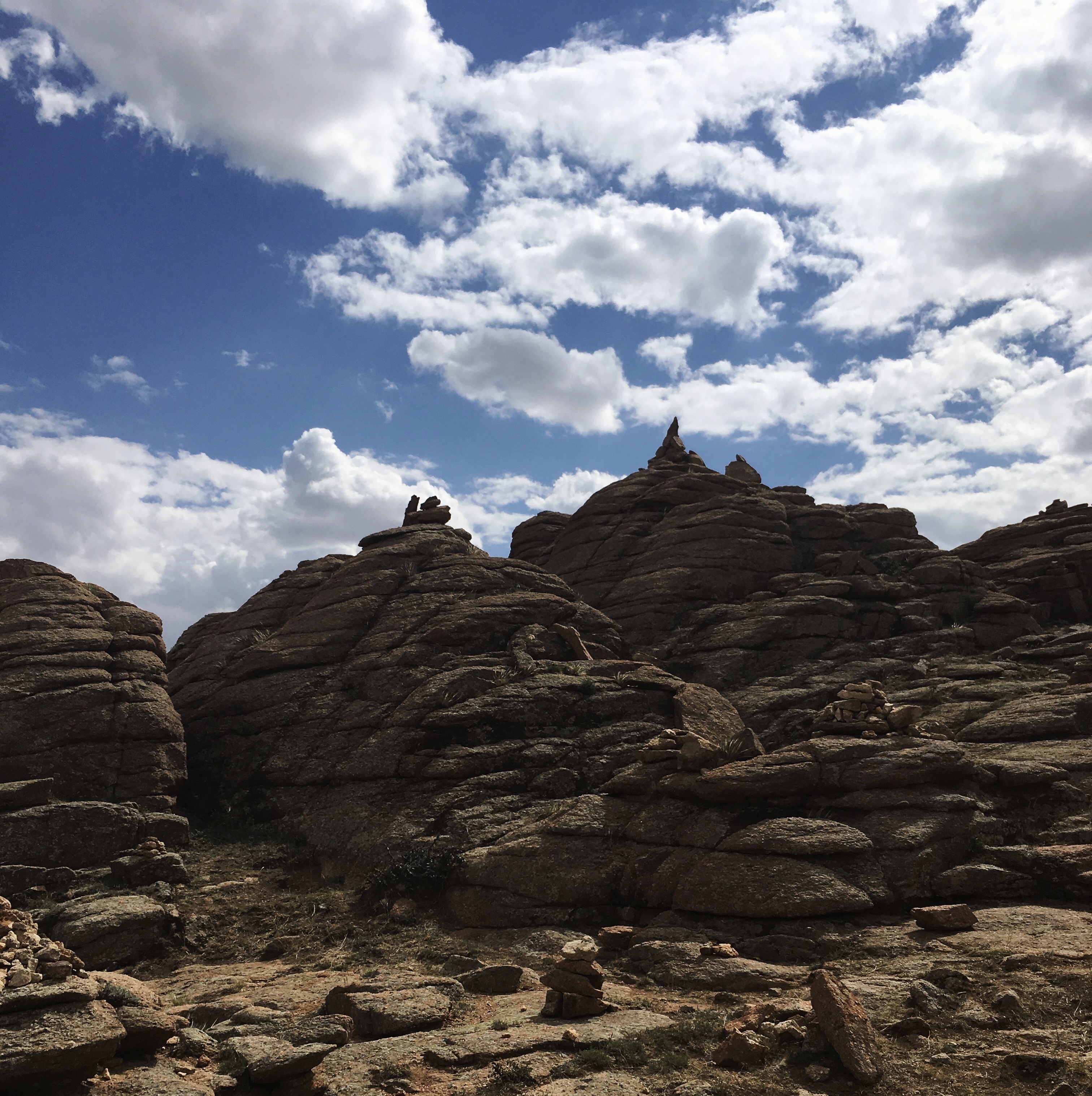 Prva postaja je bila Baga Gazryn Chuulu, granitne skulpture sredi suhe puščave. Kot nam je razložila Yuna so se v tem delu skrivale tudi lame (budistčni učitelji, ne tiste puhaste), vendar zaradi velikih jezikovnih ovir nismo uspeli izvedeti več. Zapeljali smo se kakšen kilometer stran, kjer smo sredi skale našli Eyes Spring, luknjo sredi skale, v kateri se je nahajala sveža voda, ki naj bi bila zdravilna za oči. Yuna nam je vsem, po običaju, trikrat polila oči. Kljub temu da je bila izkušnja osvežujoča, sem si morali ponovno nadeti očala, da sem našla pot do kombija.