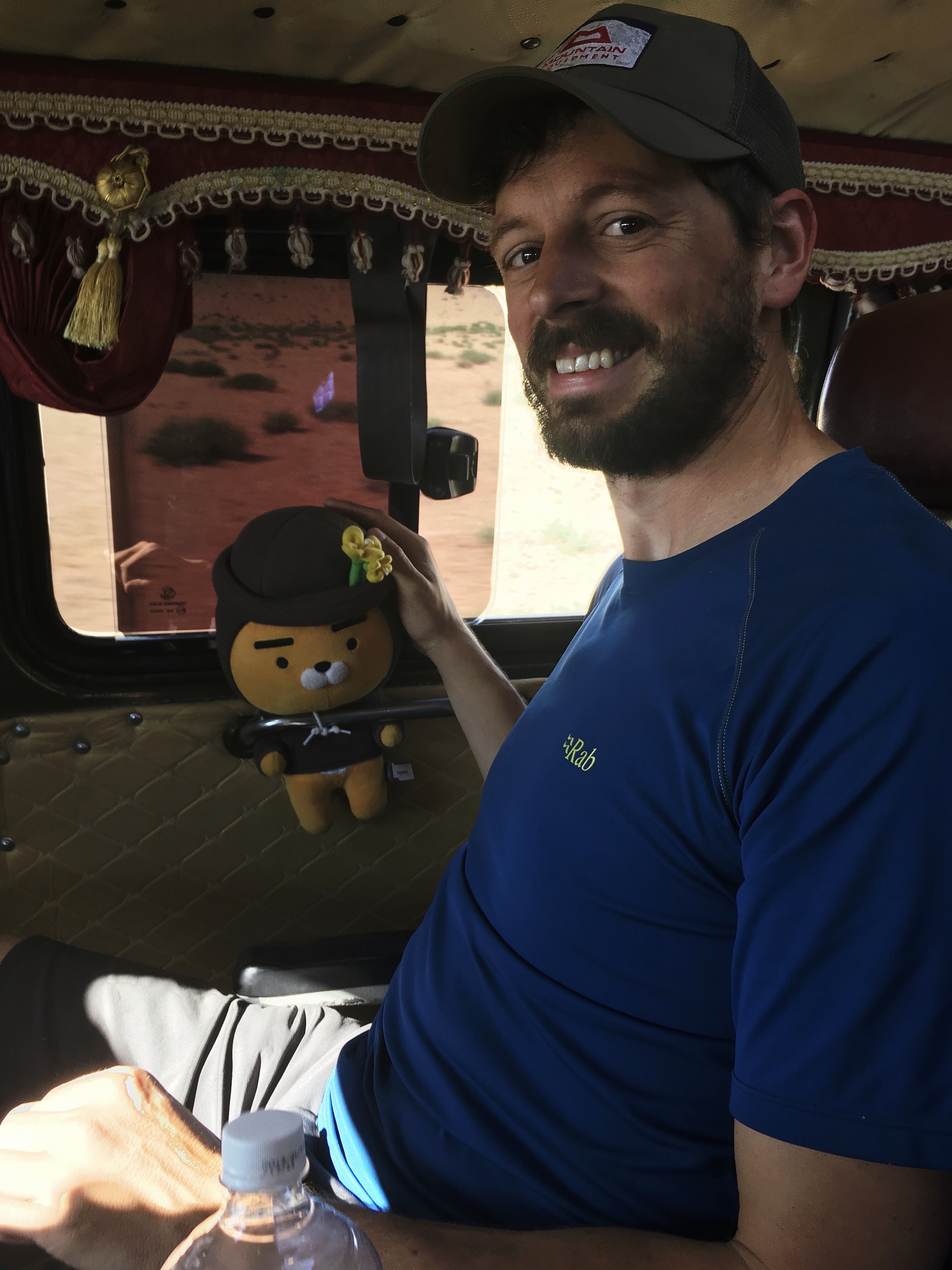 Dogovorjeni smo bili, da naju v najinem hostlu poberejo ob 9.30 in dostavijo do Camel Track hostla. Sredi zajtrka je skozi vrata v hostel prikorakal Bajna (voznik iz prejšnjega izleta). Zmedeno smo se pogledali. Midva sva pokazala na uro, ki je bila šele 8.45, ampak ko sva videla, da naju poleg voznika zunaj čaka še najin sopotnik, sva prestavila v višjo prestavo. Hitro sva pojedla, pomila posodo, spakirala do konca in Luisi v hostlu pustila denar za Undral, saj na recepciji ni bilo nikogar. Spoznala sva se z najinim francoskim sopotnikom Aloisom. Tudi njega je voznik pobral pol ure prej, zato naju je potrpežljivo počakal.
