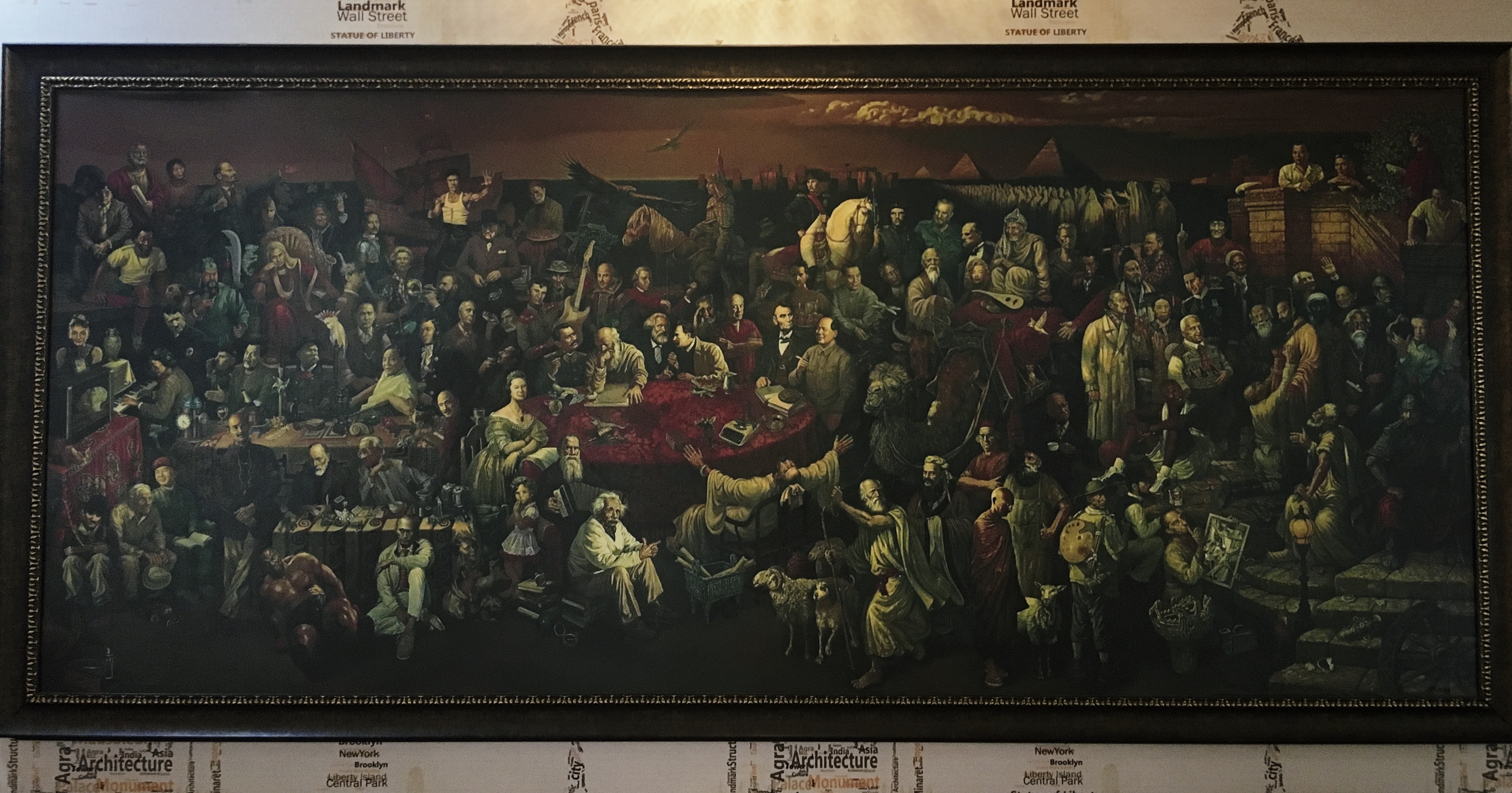 Za kosilo smo se ustavili v restavraciji, kjer so imeli za razliko od prejšnjega dne ne meniju slike in celo vegetarijanske jedi. Ker sva se mesa resnično prenajedla, sva prav z veseljem pojedla riž z malo zelenjave in pa paradižnikovo solato. Usedli smo se pod sliko z imenom “Devine Comedy with Dante” in si čakanje na hrano krajšali z iskanjem znanih oseb. Vse od Stalina, Picassa do Einstaina. Vsega skupaj 103 osebe. Zabavno kosilo :)