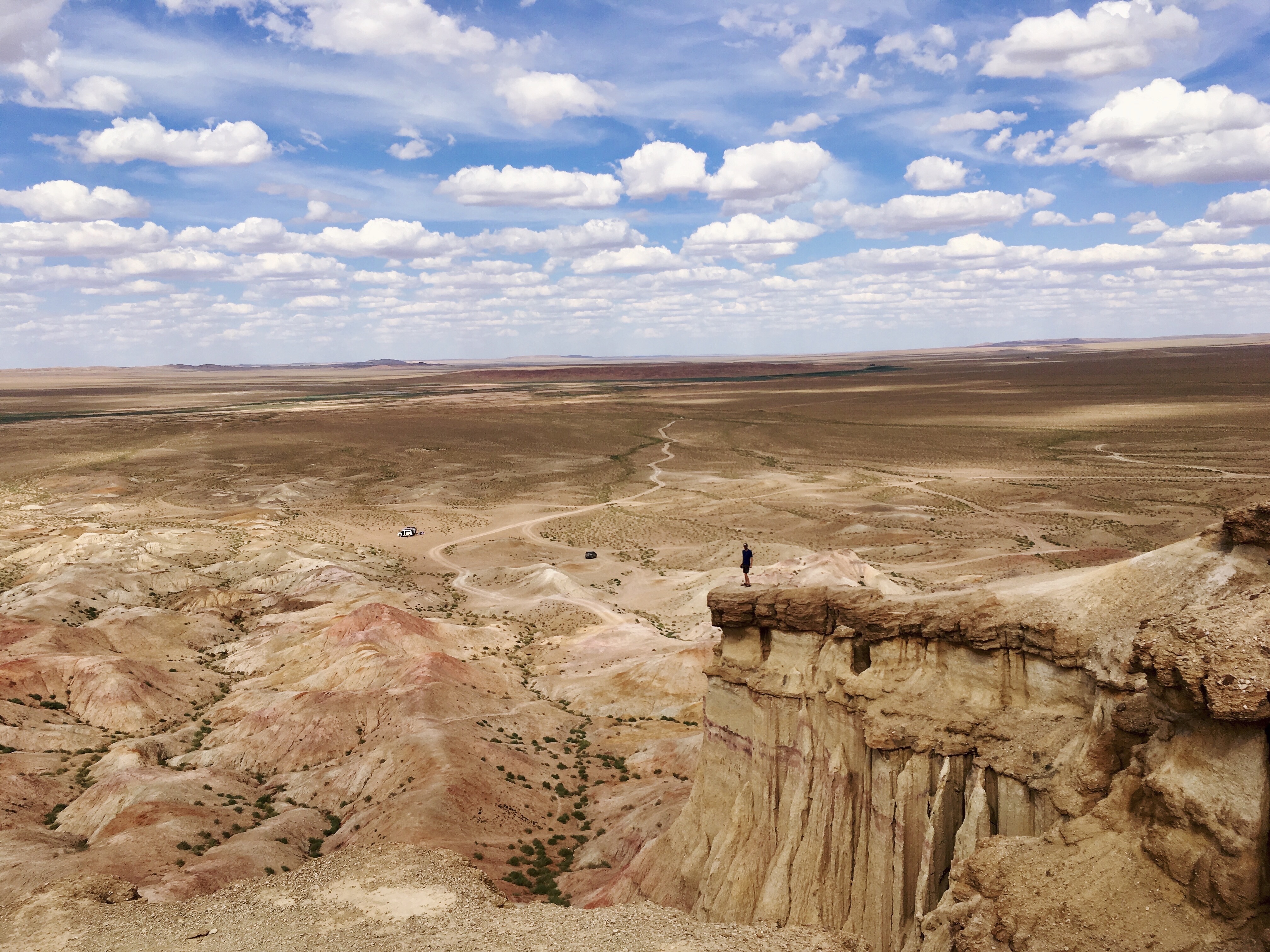 Po zajtrku smo se pridno napokali v kombi. S Tadejem sva sprednjo klop prepustila sopotnikoma in se najprej odpeljali do glavne ceste in potem proti mestu Dalanzadgad, glavnemu mestu province South Gobi. Tam smo si privoščili daljši postanek. Najprej za kosilo, kjer smo se razveselili piščanca na meniju. Potem smo se sprehodili skozi manjši park do mobilnega ponudnika Unitel, kjer si je Alois kupil mongolsko sim kartico, tako da ni več edini, ki brez telefona sedi za mizo. Vsi ostali se namreč ob priložnostnem signalu, takoj povežemo na internet in uživamo v tem luksuzu, dokler traja. V supermarketu smo si ponovno nakupili sladolede in v sosednjem zahodnjaškem kafiču spili kavo in ledeni čaj. Napojeni in nasiteni smo se odpeljali proti vzhodu do nacionalnega parka.