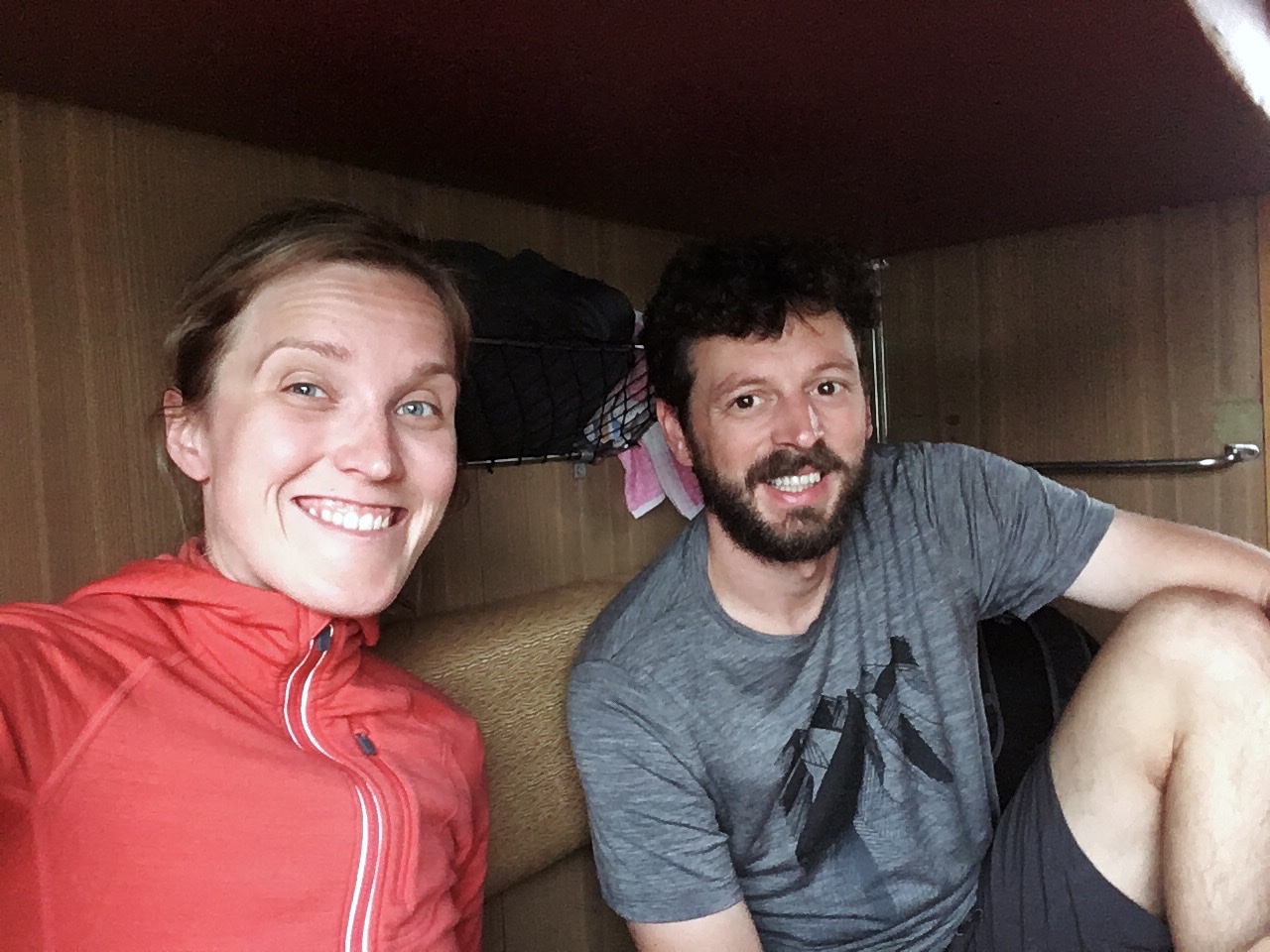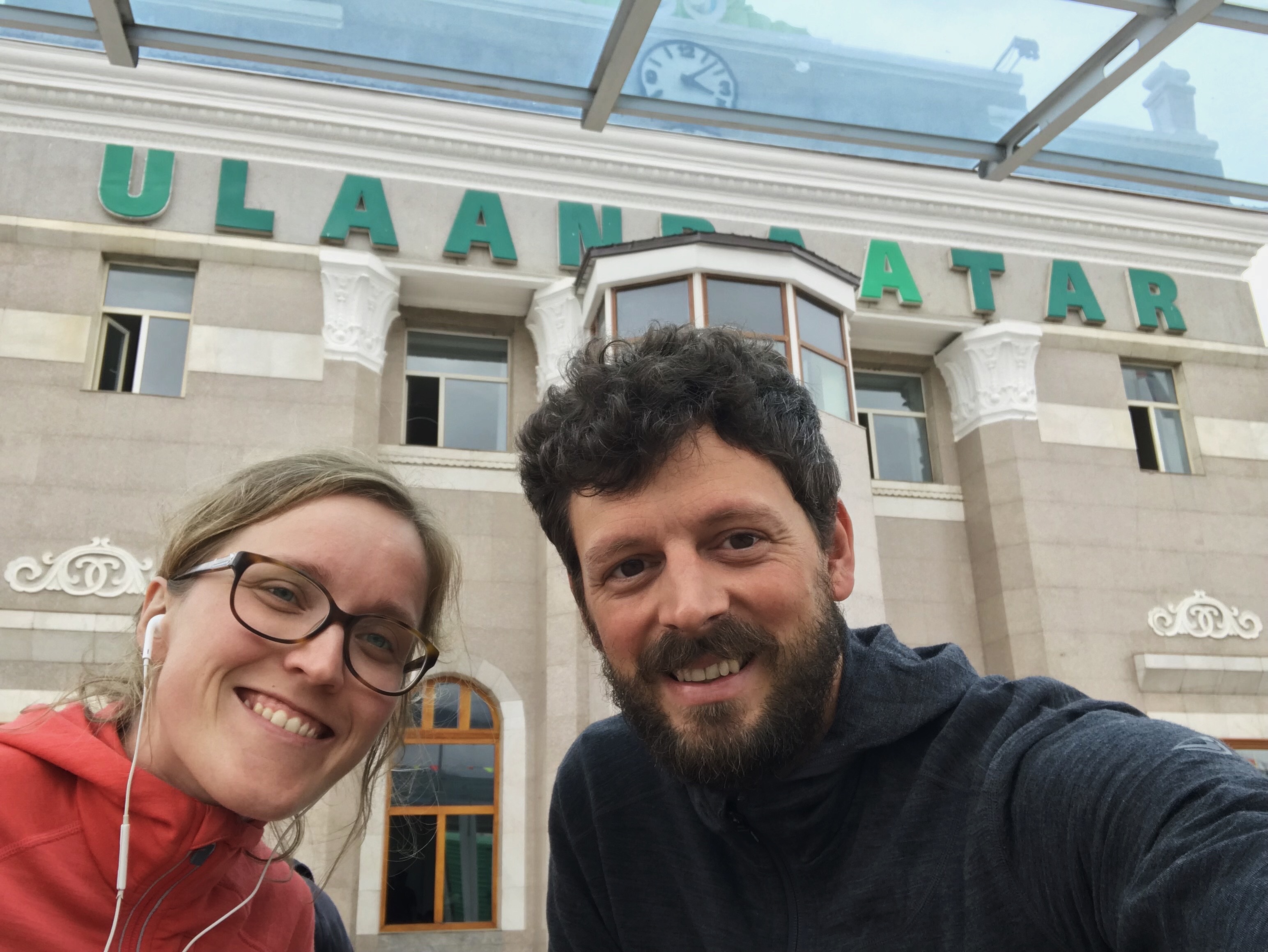 Zasedla sva eno klopco, zrla v železniške tire in navdušeno pričakala prihod vlaka. Potovanje z vlakom imajo res svoj čar in po mesecu dni sva ga kar malo pogrešala. Kupe sva si delila še z dvema sopotnikoma. Gospe sva prijazno ponudila napolitanke, ona pa je izpod postelje z veseljem hitro privlekla konček, katerega polovica vsebine je bila hrana. Ponudila nama je khooshuur (mongolsko prepognjeno testo polnjeno s čim drugim kot ovčjim mesom), prepeličja jajčka in neke oreščke, ki so imeli okus po prašku. Še zdaj ne veva, kaj točno sva jedla, ampak sva iz vljudnosti dokončala.