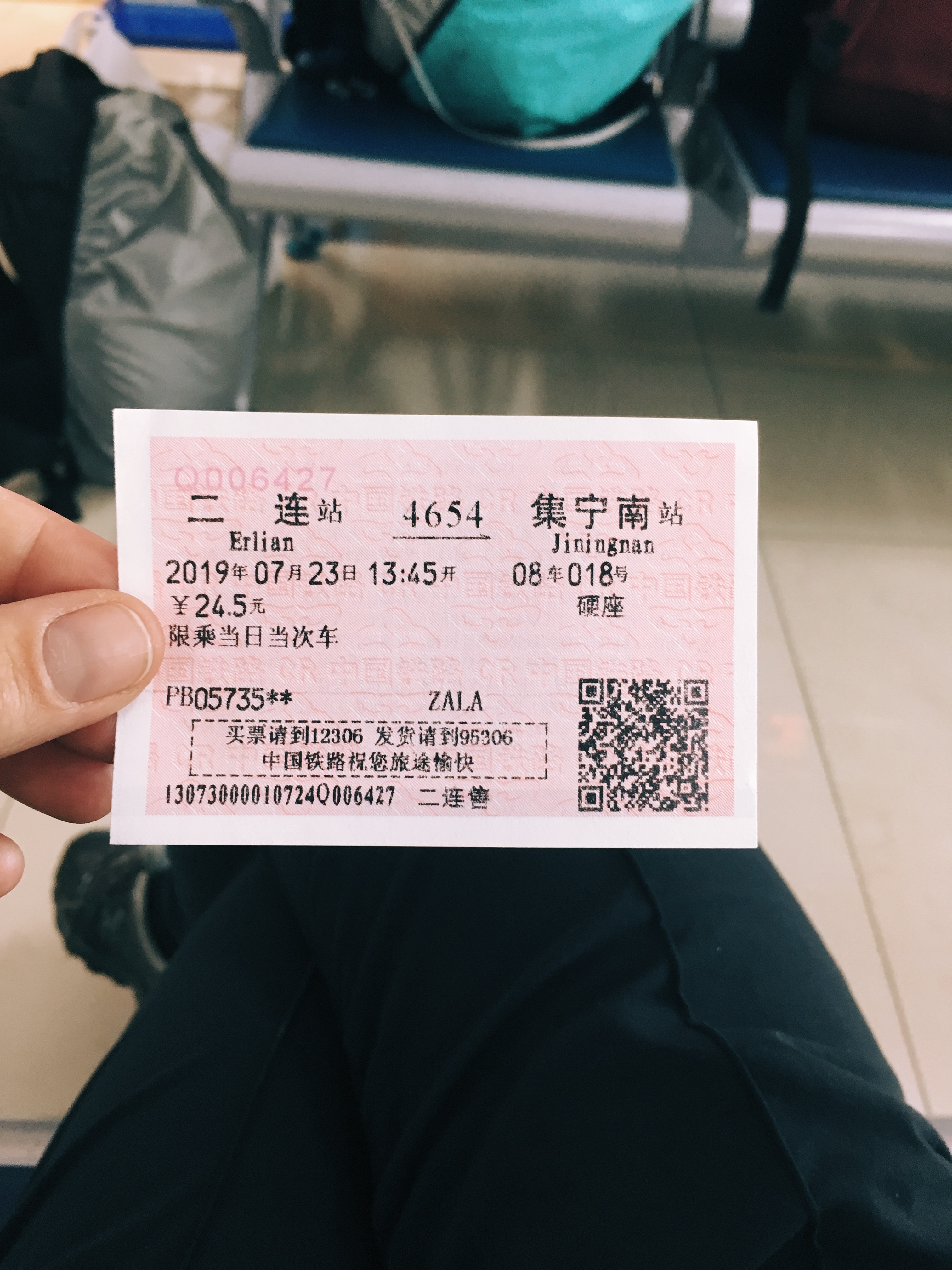 Po mesecu dni pohajanja po Mongoliji naju je čakal še zadnji del poti, zapustiti državo in prečkati mejo v tretjo državo na najini poti, KitaJsko. Nina in Aleš, ki sta ta del poti opravila že skoraj mesec dni nazaj, sta se s spalnim vlakom, odpeljala od Ulan Batorja direktno do Pekinga. Ker je to najbolj enostavno, sva prvotno tudi midva načrtovala enako pot. Na uradni strani mongolskih železnic ( https://eticket.ubtz.mn/searchcall2) sva si naredila uporabniški račun in v angleški verziji (bolj semi angleški, saj je prevedene okoli polovica vsebine) našla želeni vlak K24. Zaradi najine 30-dnevne vize sva imela zelo specifičen datum odhoda. Direkten vlak do Pekinga je vozil samo 2-3 krat na teden in v najinem primeru tri dni preden ali dan po tem, ko bi se nama iztekla viza. Obisk Mongolije sva želela izkoristiti do zadnjega dne; že tako je bil en mesec premalo, da bi obiskala vse, kar bi si želela. Undral nama je še enkrat več priskočila na pomoč in potrdila, da je najlaže in najceneje, če se z vlakom odpeljeva do obmejnega mest Zamiin-Uud, s taksijem prečkava mejo in potem na Kitajski strani z vlakom nadaljujeva pot. Poleg tega nama je predlagala obisk mesta Datong, kar se nama je zdela odlična ideja, za dan ali dva aklimatizacije pred Pekingom.