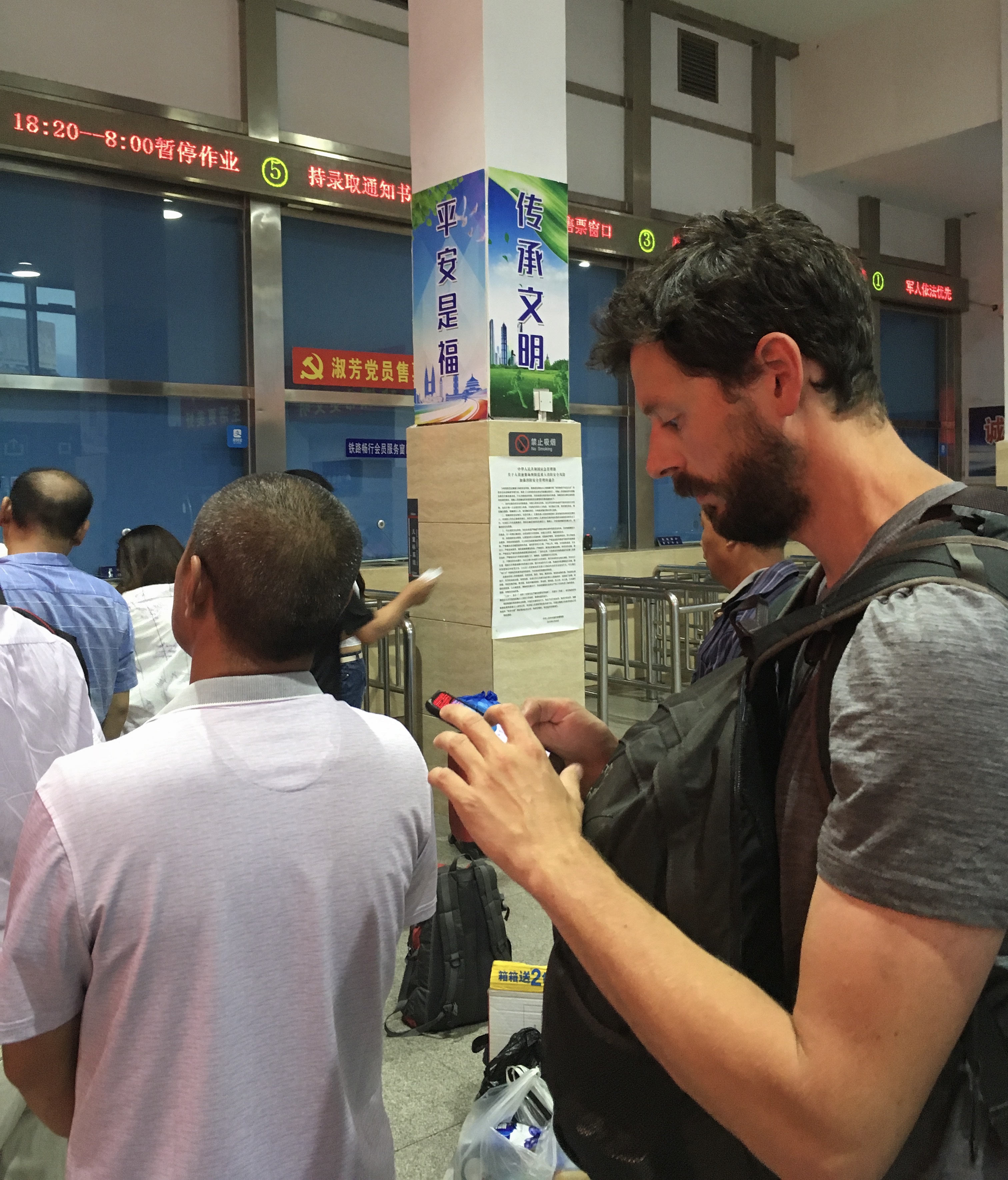 Voznik avta nas je odpeljal do železniške postaje v mestu Erlian. Cilj je bil še vedno priti do Datonga, zato sva na postaji kupila karte do mesta Jining in od tam naprej do mesta Datong. Ob vstopu na železniško postajo so vsem potnikom z rentgenom pregledali prtljago. Takoj so opazili, da imava v ruzakih ostre predmete, ki jih na železnicah ne dovolijo. Tako sva se morala posloviti od najinega švicerja in pa škarij :( ideja, da bi jih po pošti poslala do hostla v Šanghaju, ki je bila najina zadnja postaja, se nama je zdela zanimiv eksperiment, toda Moli je pri dostavljavcih izvedela, da žal ne prevažajo ostrih predmetov.