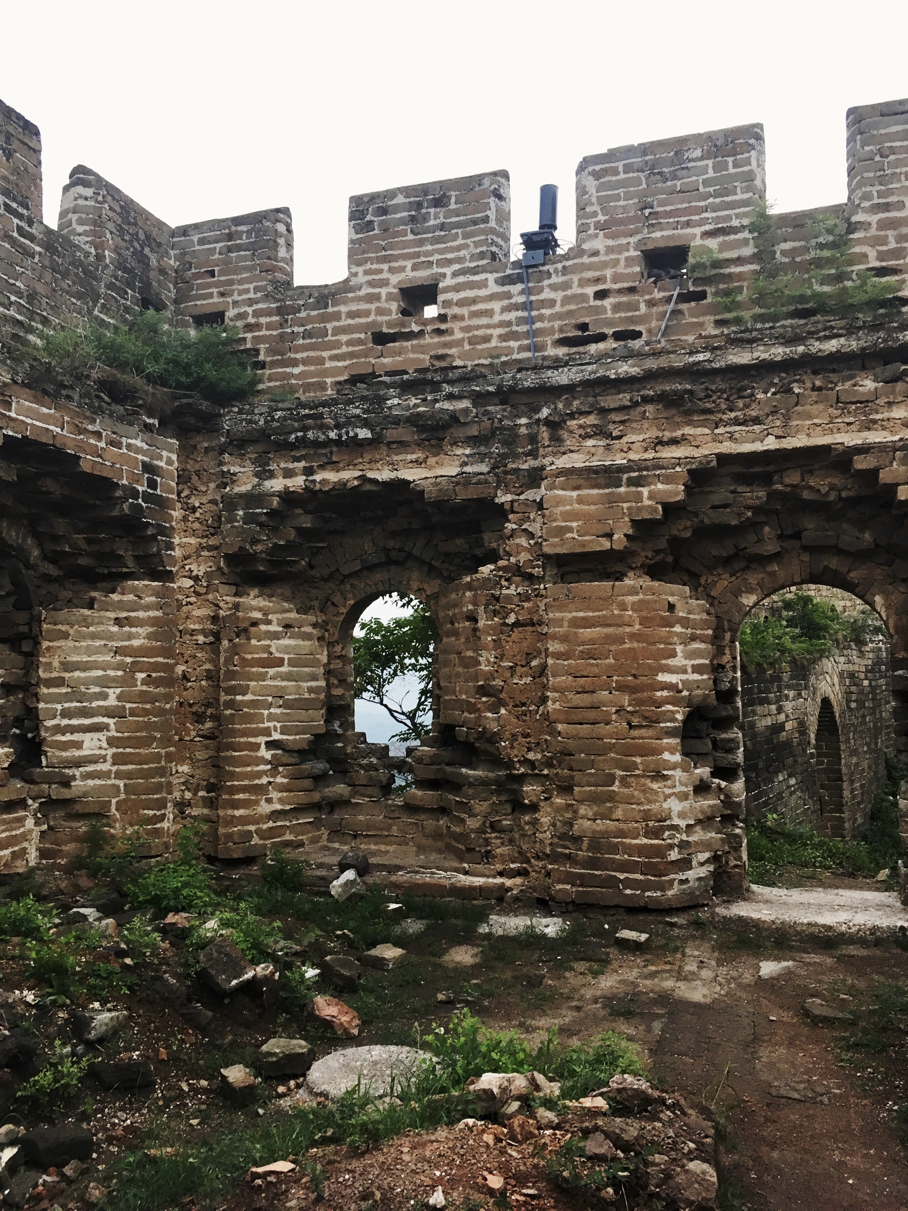 Po kakšne pol ure hoje sva zapustila obnovljen del zidu in se začela sprehajati po originalnem zidu. Še kakšne pol uri naprej pa sva prispela do dela, ki je bil zaprt in pod nadzorom vojske, zato bi morala nekaj kilometrov prehoditi ob zidu. Tam pa je nastala manjša težava, saj bi se morala z zidu spustiti v enem od vmestih stolpov. Vrata v stolp pa so bila zaprta in jih nikakor nisva mogla odpreti. Takrat nama je postalo jasno, zakaj nam je gospod zjutraj razlagal, da se vrata v stolp odprejo šele okoli 9.30. Ura pa je bila šele 6. Sprehodila sva se do prejšnjega stolpa, ampak tudi ta je bil zaprt. Za nasvet sva vprašala tudi skupino domačinov, ki so z velikimi fotoaparati kampirali v enem od stoplov in tudi oni so na žalost potrdili, da se vrata odprejo šele okoli 9. ure. Po zidu sva se sprehajala gor in dol in gledala, kjer bi se lahko spustila z njega. Na delih kjer je bil malo nižji, ni bilo spodaj nobene poti, ampak samo strma pobočja, na ostalih delih pa je bil zid visok vsaj nekaj metrov in precej navpičen, tako da kakšno pelzanje dol ne bi bilo ravno mogoče. Poleg tega je bil zid pod video nadzorom, zato sva se kakšnim kaskaderskim poskusom raje odpovedala. Sesedla sva se na stopnice in razmislila o najinih možnostih. Ali čakati še skoraj 3 ure (morda tudi več), da se vrata odprejo, ali pa se podati v kontra smer, proti vzhodu, opraviti malo krajši pohod in sestopiti z zidu pri East Gate. Odločila sva se za slednjo opcijo, saj sva do tja še vedno potrebovala kakšne 3 ure, tako da bi se do takrat stolp že moral odpreti.