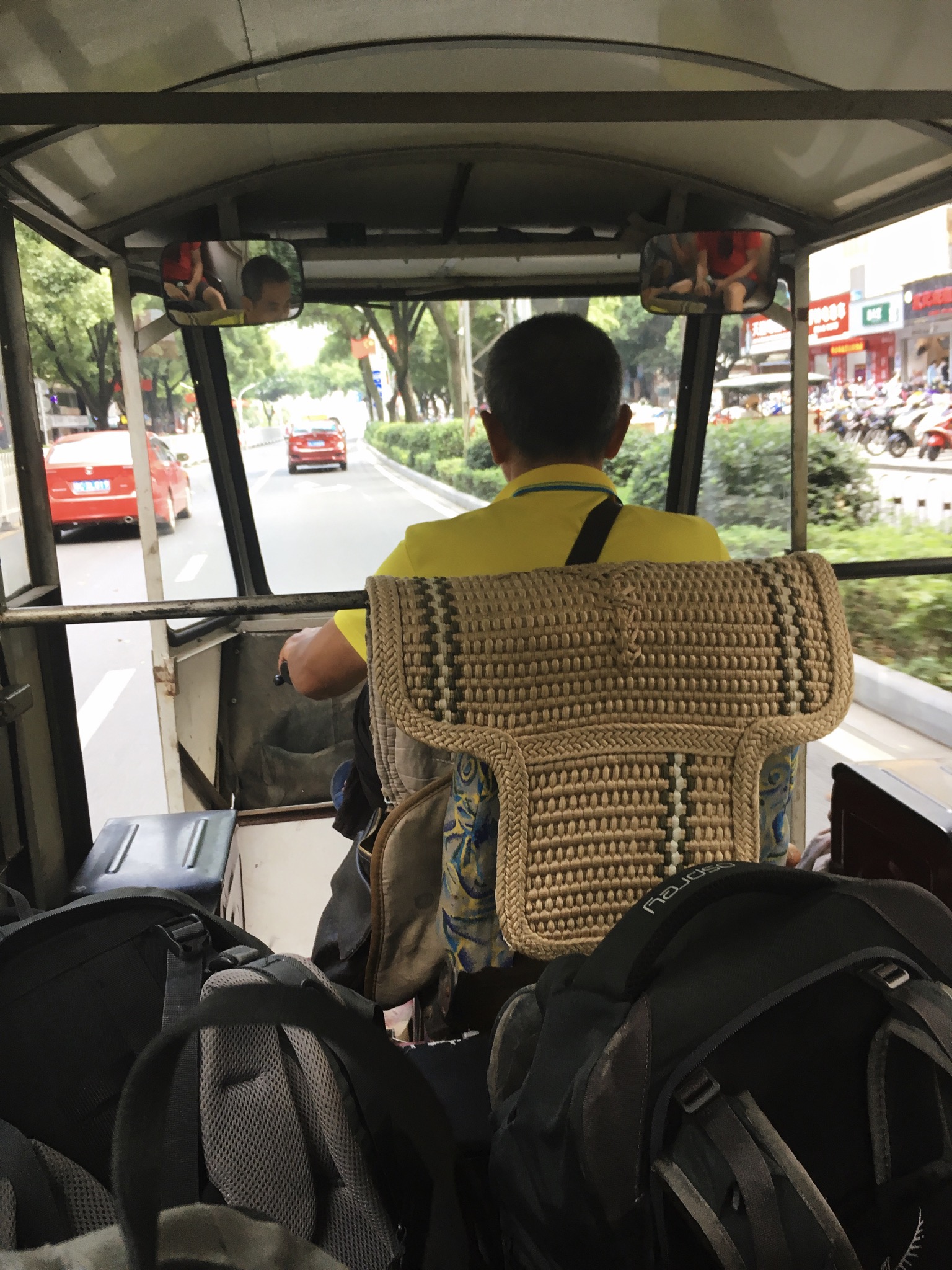 V hotelu na riževih terasah sva si uredila prevoz do mesta Guilin, saj direktnega prevoza do Yangshua ni bilo. So pa nama na recepciji zagotovili, da naju bo voznik odložil na postaji, od koder bova imela direkten bus naprej. Odlično, sva si rekla. Pot po ovinkih je bila naporna in vroča, saj smo bili natovorjeni do zadnjega mesta, klima pa ni delala najbolje.