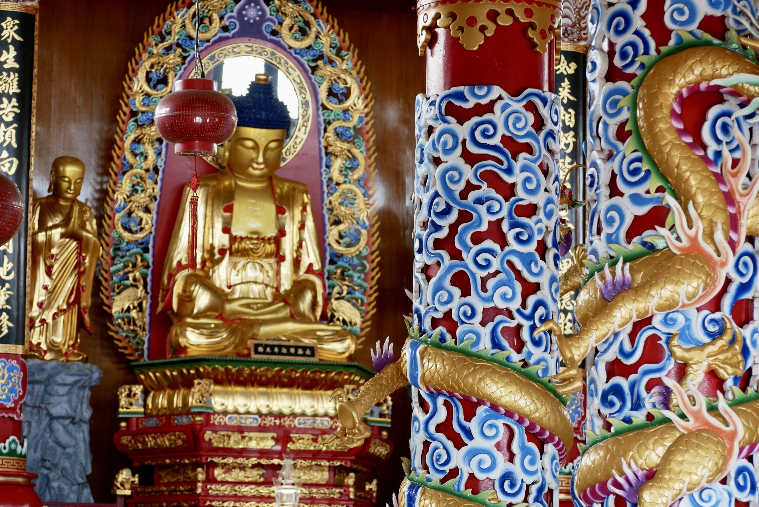 Za vogalom sva si v pekarni kupila nekaj prigrizkov in si naročila nov grab, ki naju je odpeljal do nekaj kilometrov oddaljenega kitajskega budističnega templja. Tja sva se najprej želela odpravit peš, pa nama je lastnik hostla močno odsvetoval, saj naj bi bilo na enem predelu veliko pocestnih psov. Gospoda voznika naju je počakal, da sva si ogledala tempelj, in naju odpeljal nazaj do mesta.