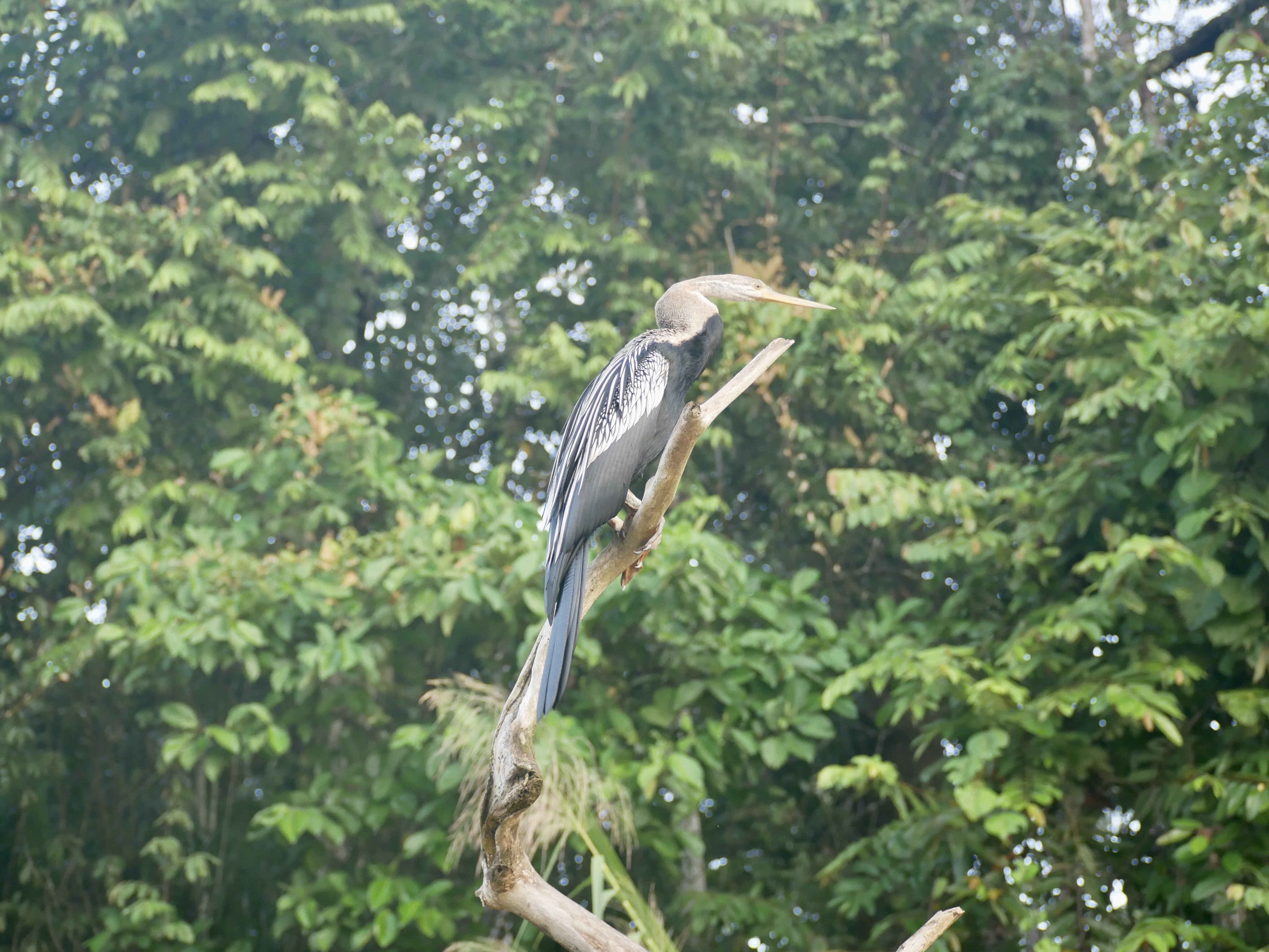 Po večerji smo imeli na sporedu nočni izlet po reki. Vodič je imel s seboj mega močno luč s katero je po krošnjah iskal nočne ptičke in po gladini iskal krokodile. Naslednje jutro smo se ob 7h odpravili na nov izlet. Tokrat smo zavili v drugo smer in se odpeljali po ozkem kanalu do manjšega jezera. Kanal z bujnim rastjem je bil spektakularen in s Tadejem sva ves čas gledala, kje se bo priplazila kakšna kača. Pa se ni, videli smo spet ogromno mafijskih opic in ptic.