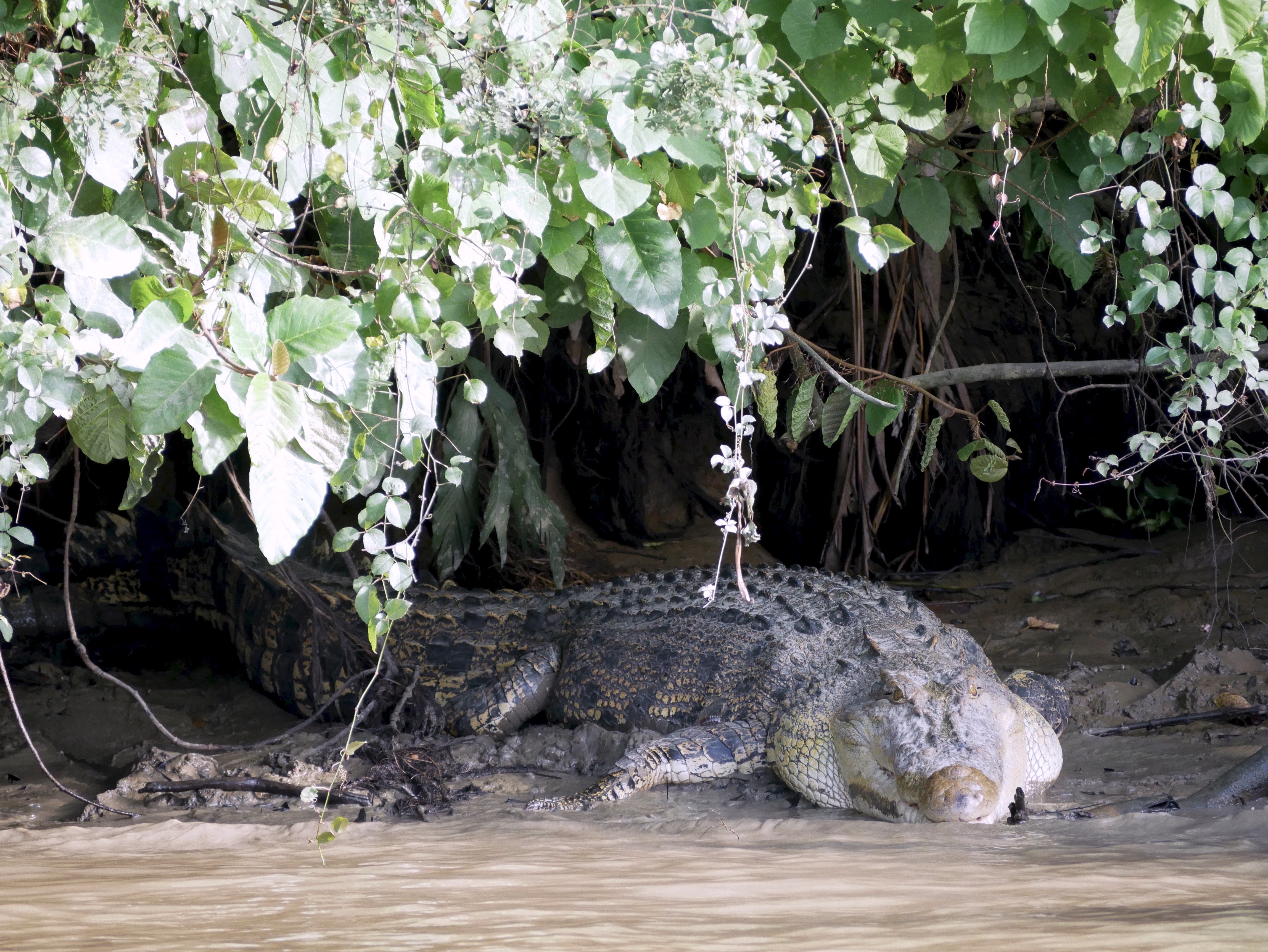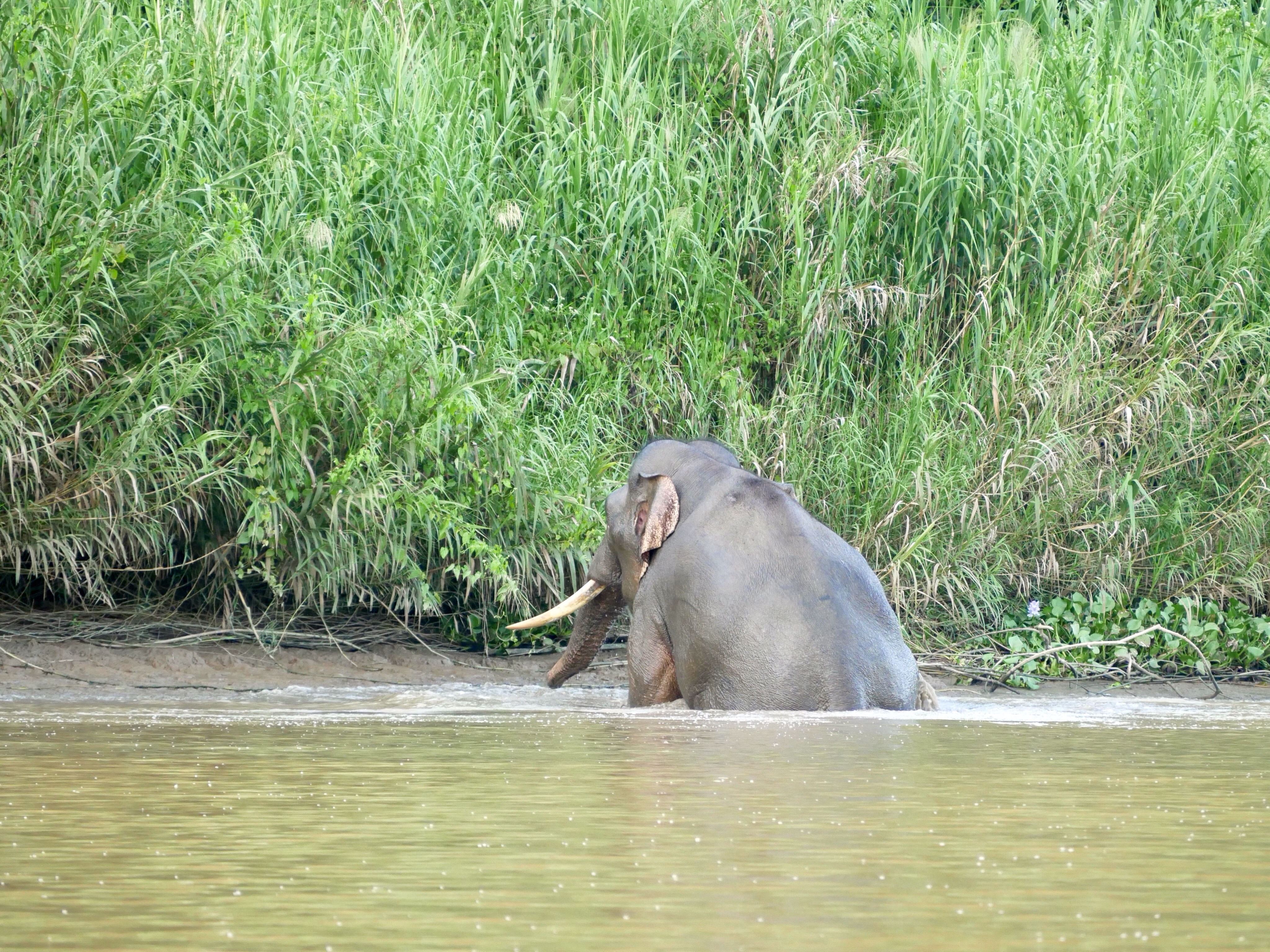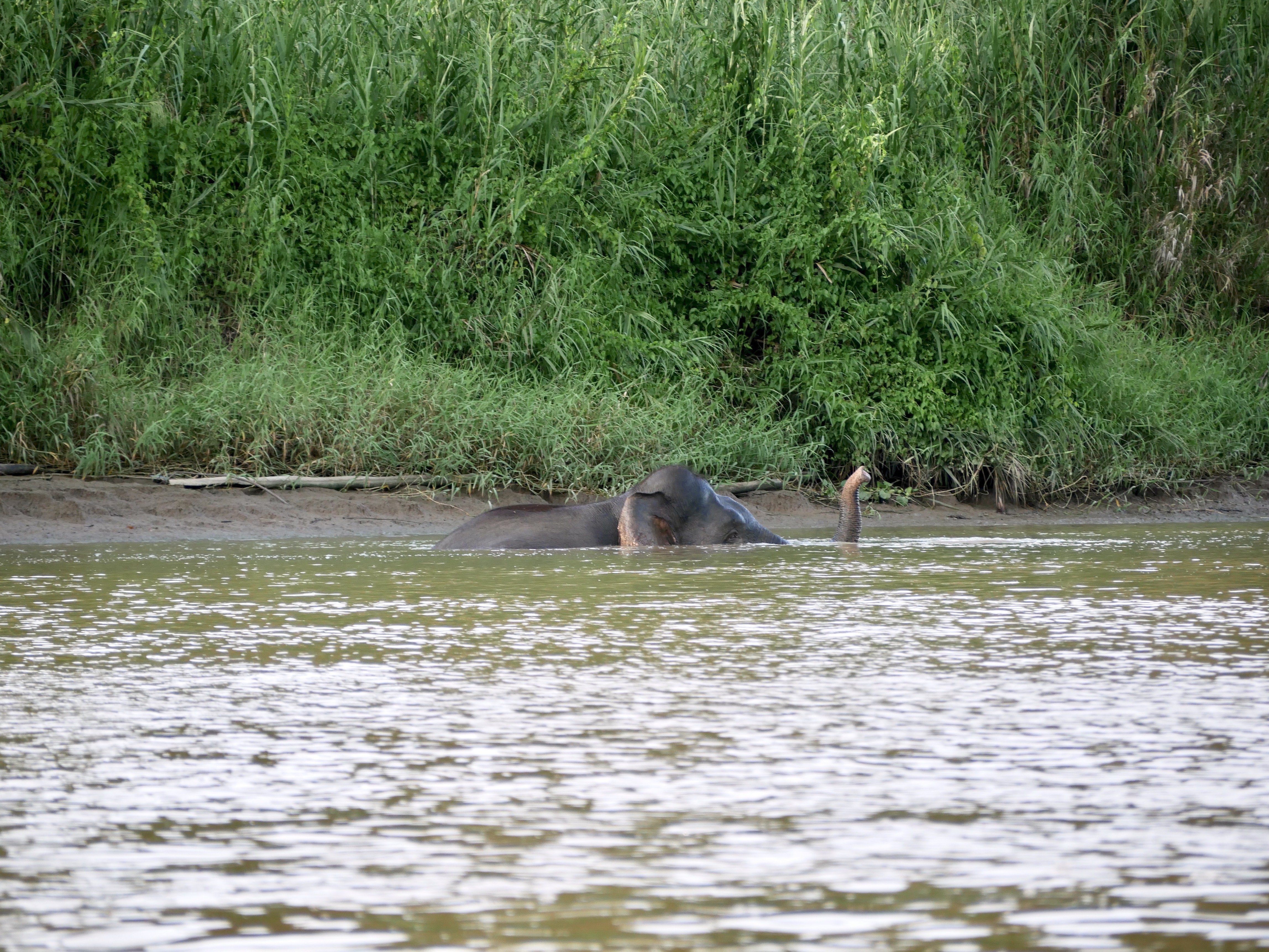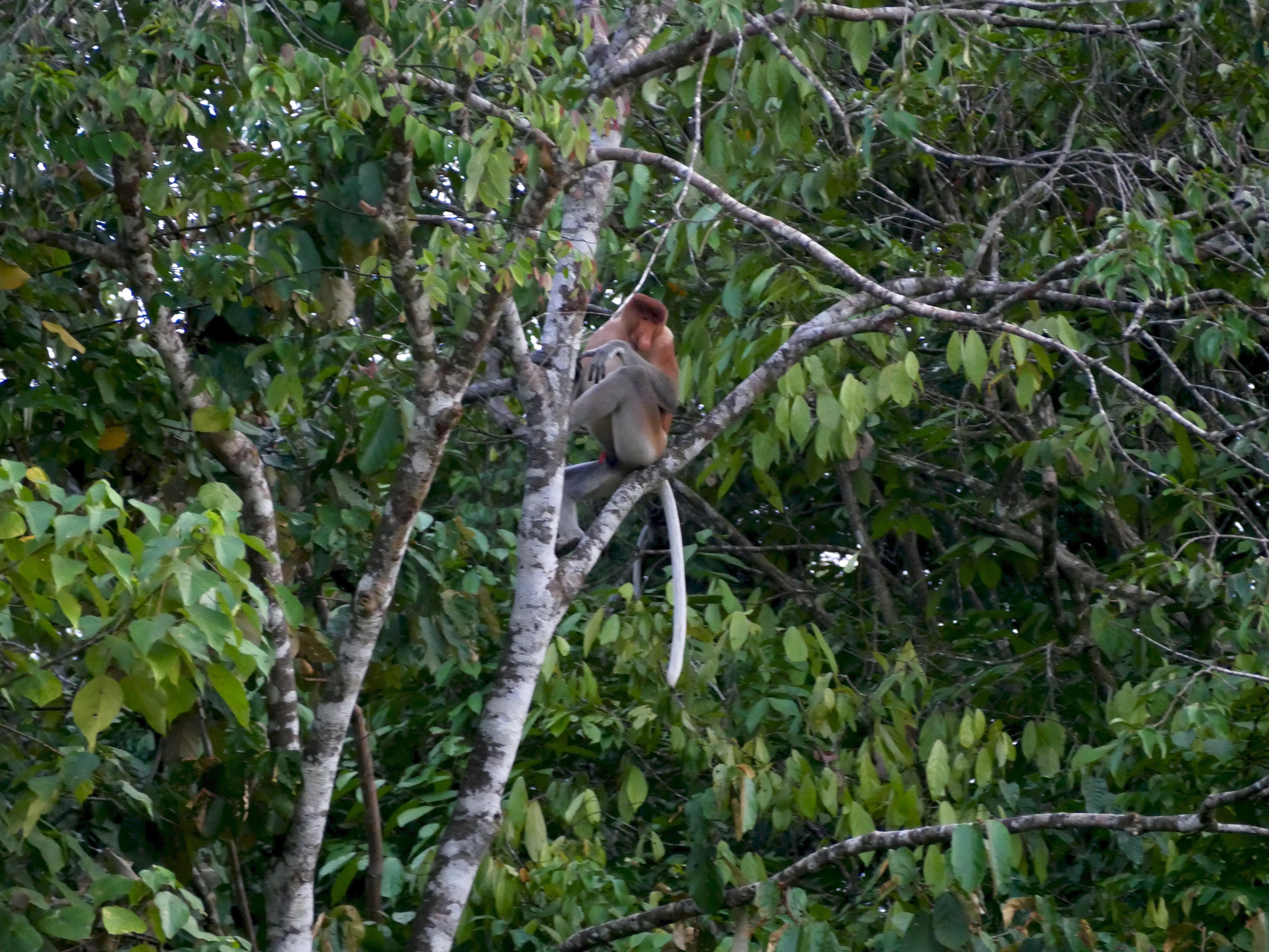 Prvi izlet smo naredili okoli 5. ure popoldne in ker sva bila edina obiskovalca, sva imela ladijco zase. In kakšen izlet smo imeli. V dobri uri in pol smo videli vse živali, ki jih “obljubljajo” na takšnem izletu. Najprej so nas zabavale opice (domačini jih imenujejo jungle mafia), potem smo našli majhnega krokodila in kmalu zatem še eno velikansko mrcino. Ko je vodič začel vriskati od veselja, sva vedela, da takih ne vidijo vsak dan. Tako na oko bi rekla, da je bil velik okoli 3 metre. In potem je sledila zvezda popoldneva. V blatu ob reki smo lahko opazovali slona, ki se je kopal. Ti sloni so ene najmanjših vrst (po angleško se jim reče pygmy elephant). Kot da to ni bilo dovolj smo na drugi strani reke zagledali še orangutana, ki se je v daljavi zibal v krošnji drevesa. Na koncu smo videli še tipične opice rilčarje (proboscis monkey oziroma Dutch monkey, kot jih kličejo domačini). Ker je bil to najin prvi izlet sva mislila, da bodo vsi tako pestri, ampak v naslednjih dneh se je izkazalo, da smo imeli res izjemno srečo.
